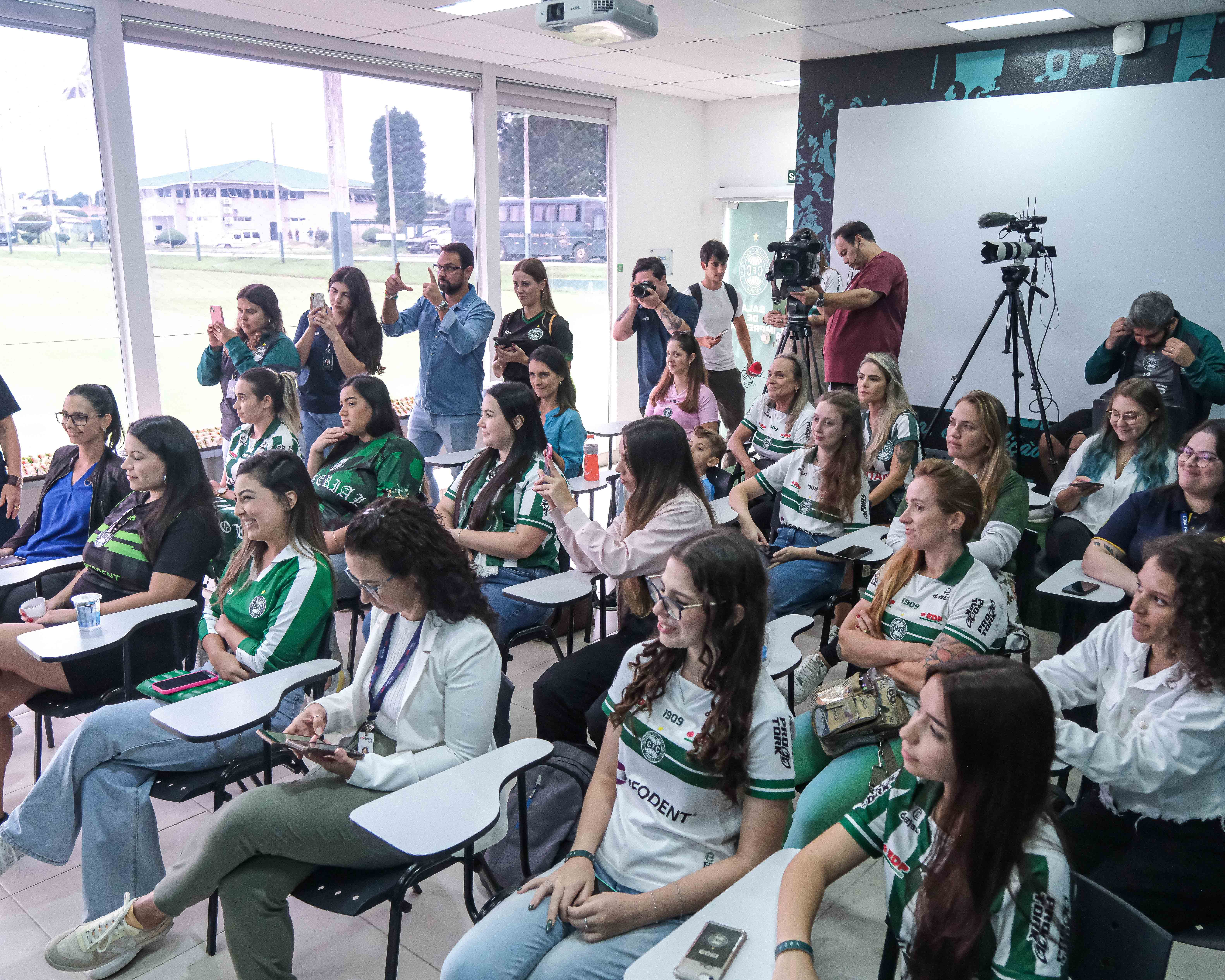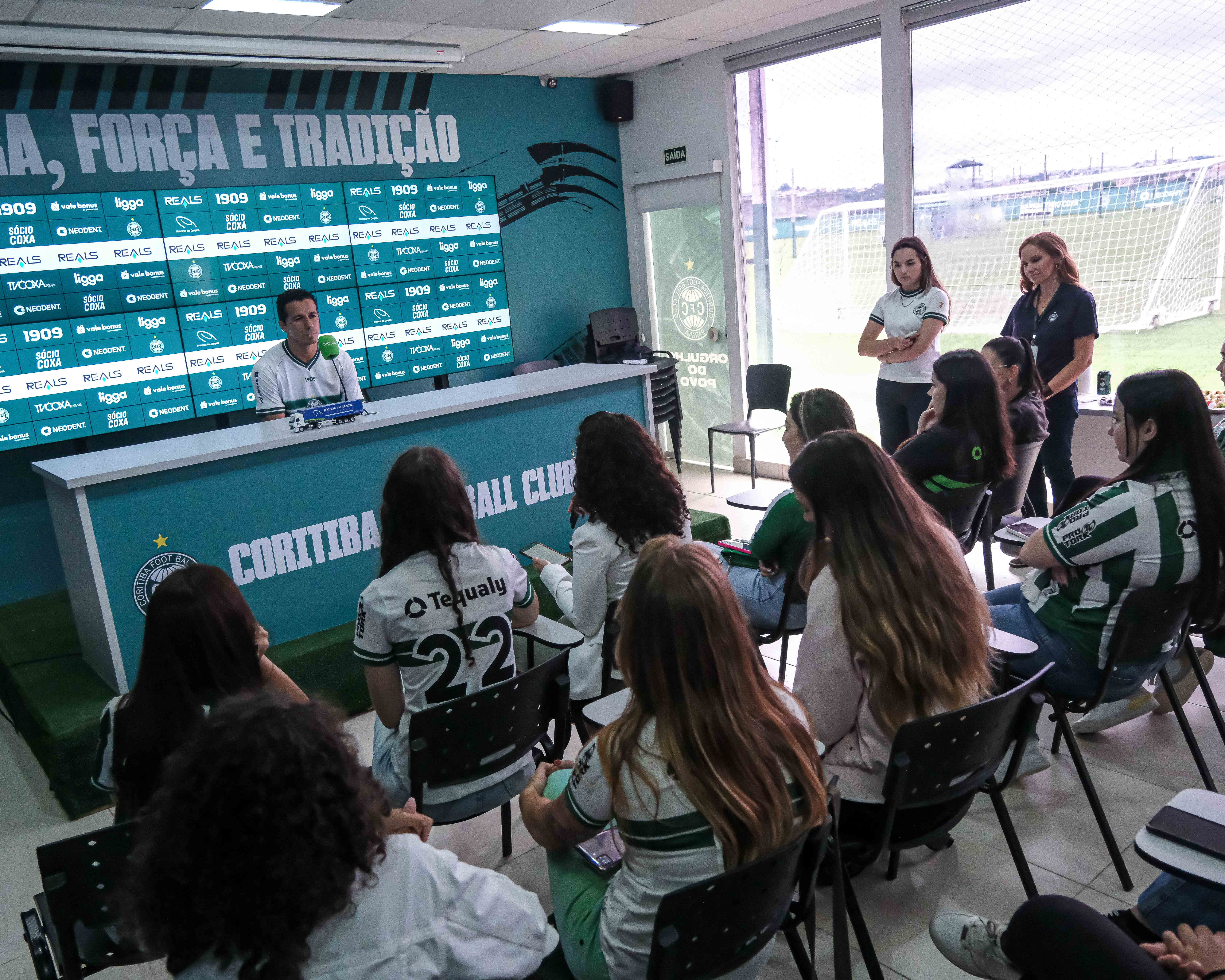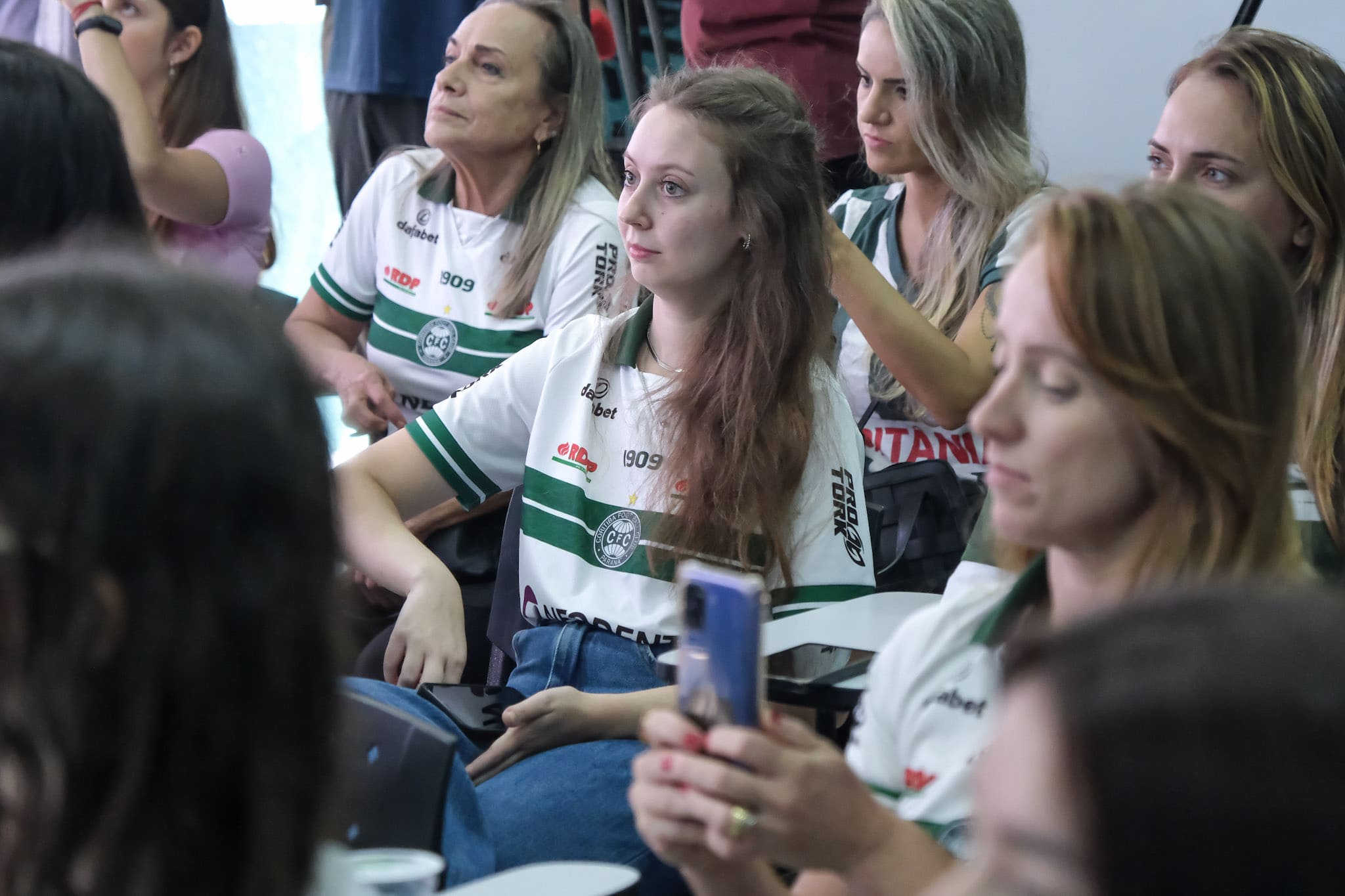 “Agradeço a cada uma de vocês por esse belíssimo evento, e gostaria de parabenizar a todas pela coletiva, vocês fizeram perguntas de muita qualidade, consistentes e com muita competência. Essa iniciativa é apenas um evento desta semana, que será dedicada integralmente para todas as torcedoras do Coritiba, para as mulheres que tanto amam e constroem esse clube”, disse Carlos Amodeo.
